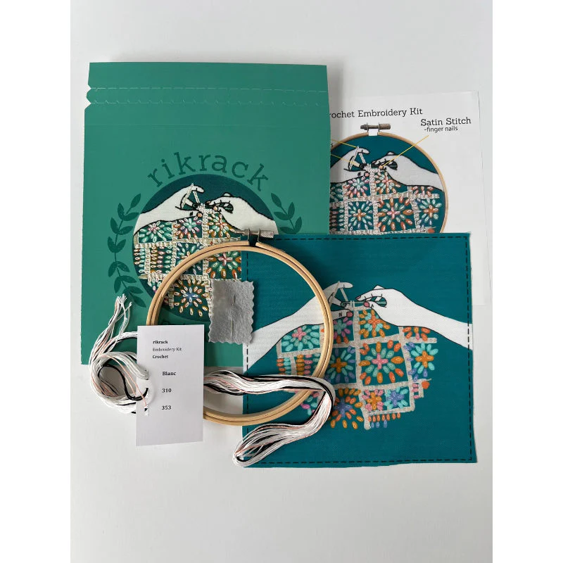 Rikrack Embroidery Kits are not only beautiful and unique but also fun and simple to stitch. Comes packaged in full color recyclable paper envelope. Perfect for gift giving.