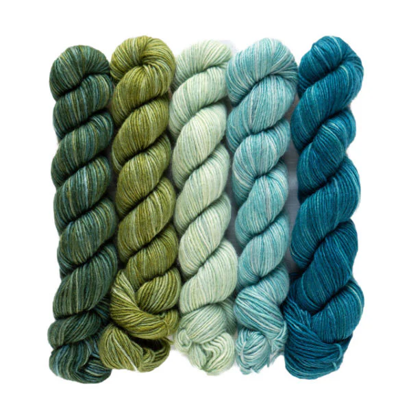 Fino Mini Skeins are sets of 5 mini skeins of 20 g each in beautiful color combos, specially designed for color work knits. Each mini skein set is equivalent to one full skein.